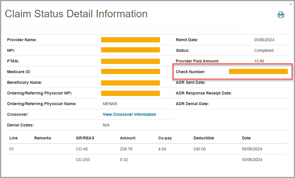 • The check number associated with a completed claim is now available to view on the Claim Detail Information screen.