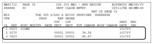 - CGS encourages you to use the first Medicare billable visit in the episode as the date of service submitted with revenue codes 027X or 0623.