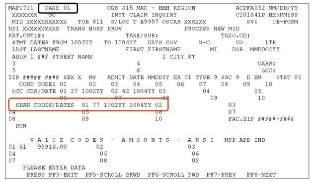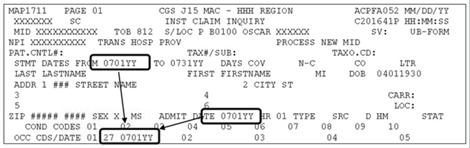 - Make the correction to the claim by correcting the line item date, or the statement covers period. Press F9 to allow the claim to continue processing.