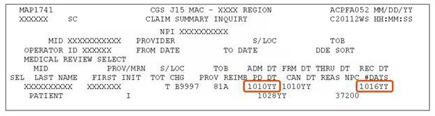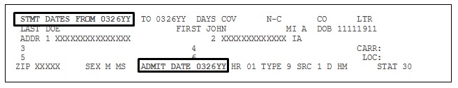 The following is an example of an untimely NOE and shows the admission date of 10/10/YY with a receipt date of 10/16/YY.