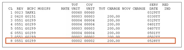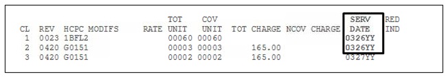 - Before submitting your claim, review the dates entered for each line item revenue code to ensure the date falls within the Statement Covers From and To dates.