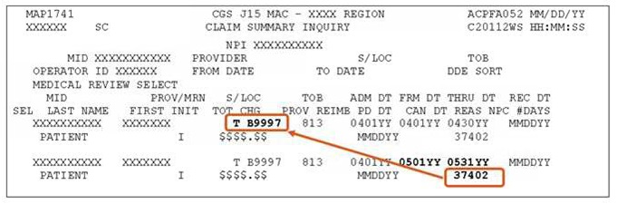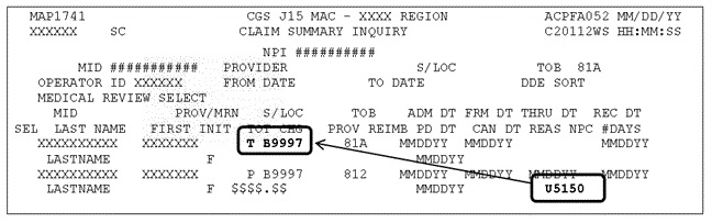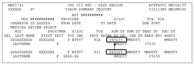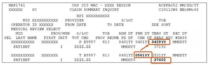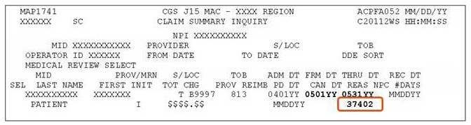 - There is less than 60 days between the "FROM" and "TO" date submitted, and a patient status code "30" appears on the claim.