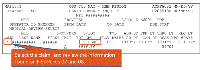 If the information in the REMARKS field is not clear, and you need to submit documentation to CGS, we suggest that you include a screen print of FISS Page 08, so the documentation can be associated with the exception request for the specific patient and claim. If CGS is unable to match the documentation to a specific claim, the exception request will be denied. Documentation may be submitted one of the following ways:
