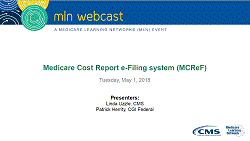Medicare Cost Report e-Filing System WebcastLearn how to use the Medicare Cost Report e-Filing (MCReF) system. Medicare Part A providers can use MCReF to submit cost reports with fiscal years ending on or after December 31, 2017. View the Medicare Cost Report e-Filing System Webcast |