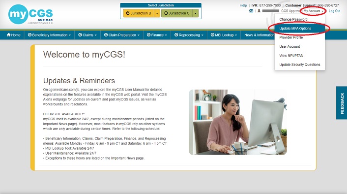 After completing these simple steps, log in to myCGS® and click "My Account" in the top right corner of your screen. Select "Update MFA Options."