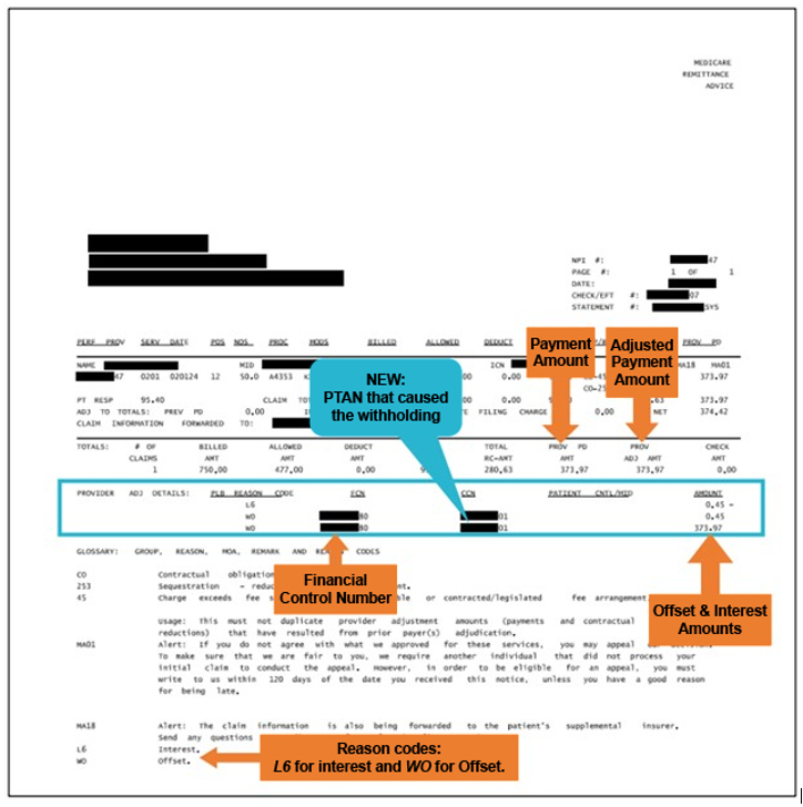See below for an example of the updated remittance advice that provides the PTAN that caused the offset: