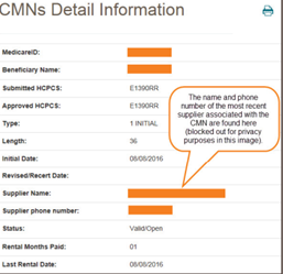 Para obtener información acerca de un CMN seleccione el código HCPCS del CMN apropiado. Una vez haya presionado el enlace del HCPCS, la ventana de Información Detallada del CMN "CMN Detail Information" aparecerá con los siguientes detalles del CMN: