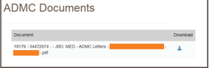 Para ver la carta con la decisión de la ADMC, presione en enlace en la columna de documentos. myCGS abrirá la ventana de documentos en donde podrá ver o imprimir la carta, presionando el ícono "Download".