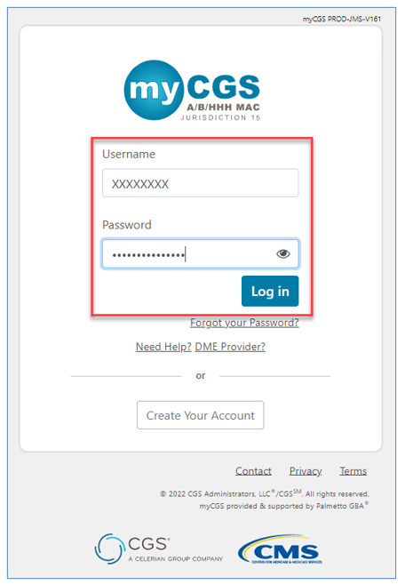 - Navigate to the myCGS Login page.