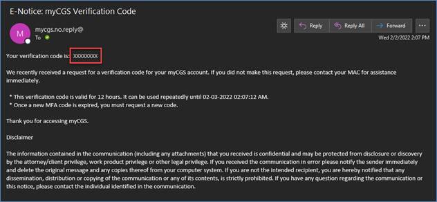 MFA is a CMS requirement that provides an additional form of security to safeguard provider and patient information. The MFA verification code is a 6- or 8-digit code that must be entered before gaining access to myCGS.
