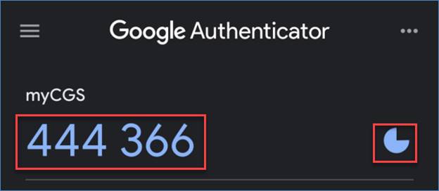 - If using Google Authenticator to access myCGS, the app continuously changes to a new 6-digit code every 30 seconds.