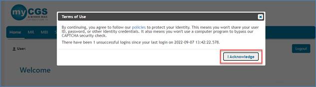 Before accessing myCGS, you must acknowledge the myCGS Terms of Use.