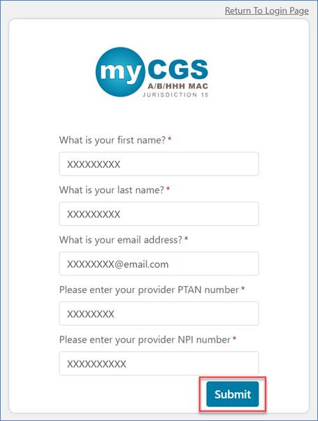 Enter your name, email address, PTAN, and NPI.