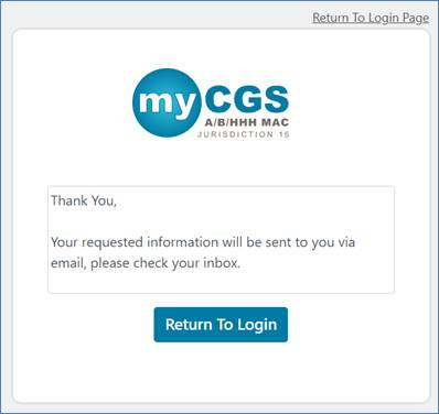 If the information entered matches your registered account, myCGS will send you an email.