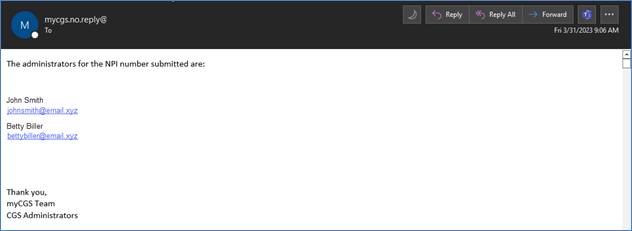 The email identifies your Provider Administrators.