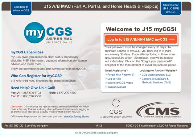 - Click on "Log In to J15 A/B/HHH MAC myCGS."