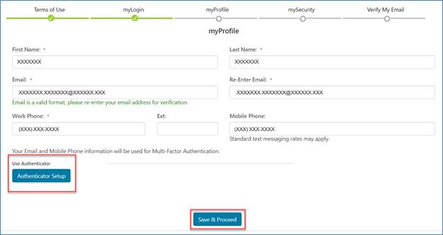 - Mobile Phone Number (Not required but will be an option to receive the Multi-factor Authentication (MFA) code.)