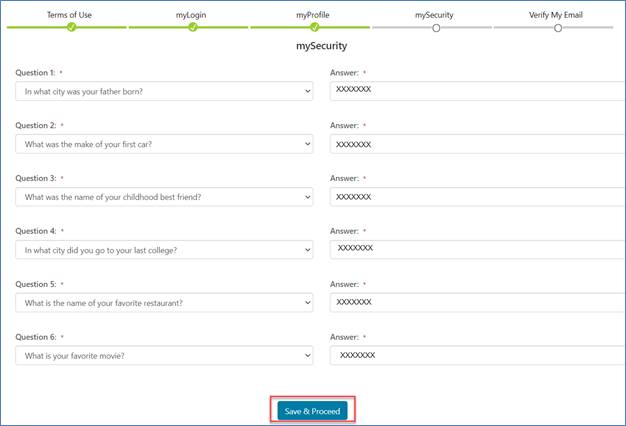 - From the mySecurity page, select your security questions and answers. This is important should you forget your password and need to reset it. myCGS will ask you these questions as a way to confirm your identify.
