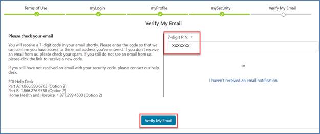 - Enter that code on the Verify My Email page. Click the "Verify My Email" button to continue.