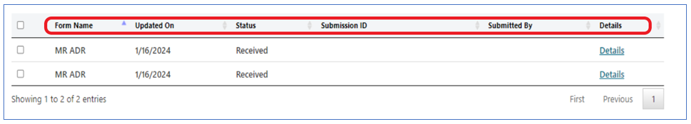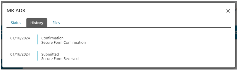 | Status | Status of the ADR or Form that was submitted |