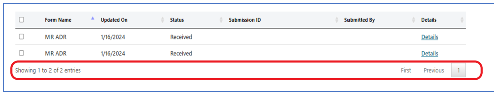 | Date of Submission Range | Allows you to filter up to 90 days at a time. |