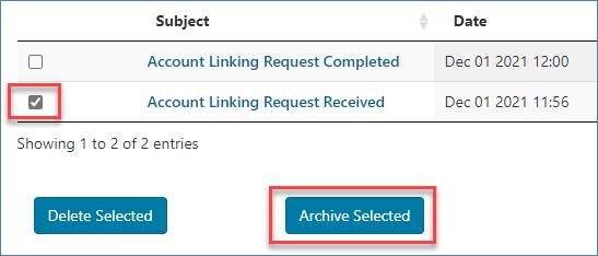 To archive a message or multiple messages, check the box of the message and click the "Archived Selected" button.