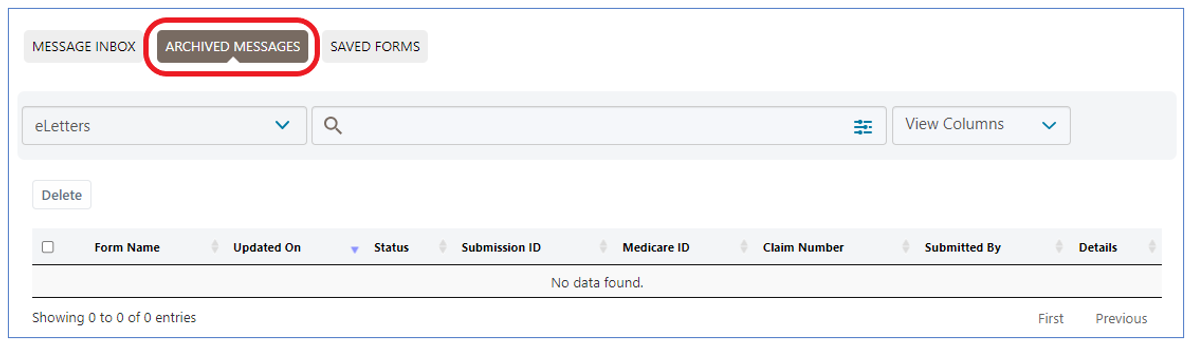 NOTE: Messages will be automatically moved to the ARCHIVED MESSAGES sub-tab after 60 days. Messages will NOT be available after 365 days.