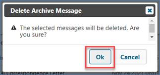 A message will display asking you to confirm. Click "OK" to archive the message.