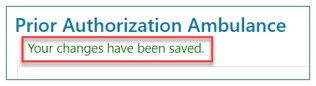 When selected, a message will display to confirm the form has been saved.