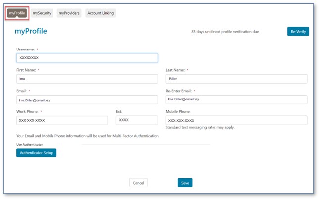 - From the “My Account”tab, review the information on your “myProfile”sub-tab to ensure all is accurate and current. Make changes as needed.