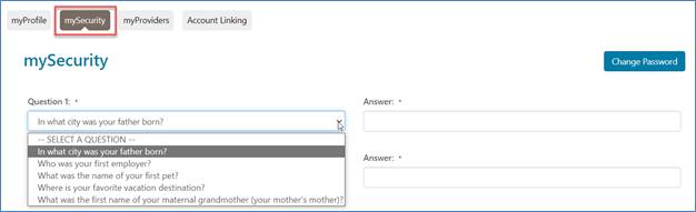 - Select the "Change Password" button from the "mySecurity" sub-tab.