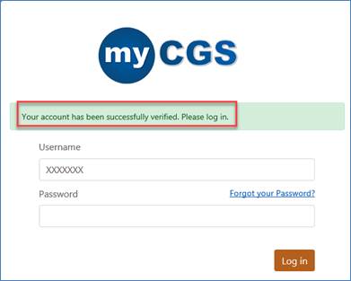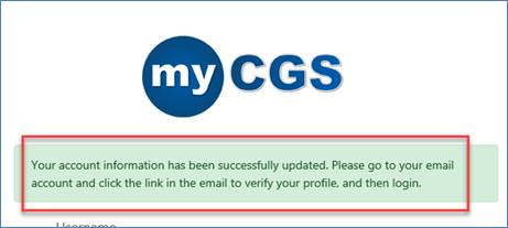 - In other cases, myCGS will default to the login screen, displaying a message to confirm an update was made to your information. You will be directed to your e-mail to click on a verification link.