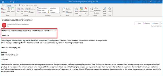 - If the account you are attempting to link is active, a confirmation message will display to let you know the account will be linked within 24 hours.