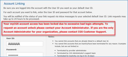 - When attempting to link a User ID to a Super ID, please be sure to enter the password correctly. Three unsuccessful log-in attempts will cause that User ID to be locked. Your Provider Administrator must unlock the account.