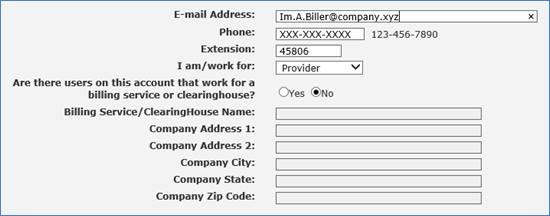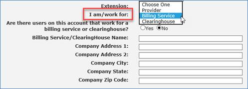 - When updating the field showing you work for a billing service or clearinghouse, note that the billing service/clearinghouse address fields will display for you to complete.