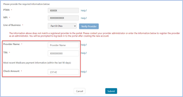 - This includes the provider's name, Tax ID Number (TIN) (without dashes), and the amount of the most recent Medicare payment. Note that this is the same information required in the registration process. Also note that the provider must have an EDI Enrollment Agreement