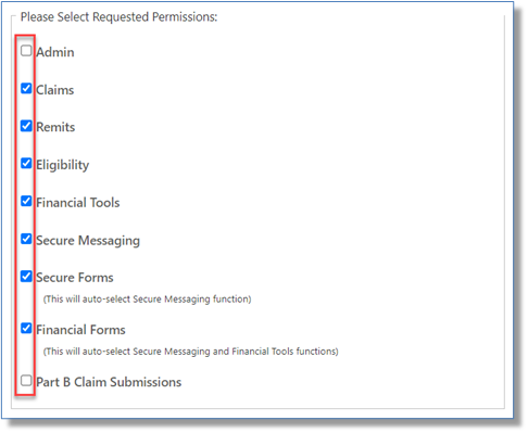 - If the provider information entered is verified to be for a provider that is already established in myCGS, you will then select the permissions you would like to have for that provider account.