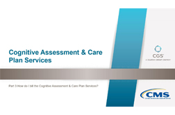 What are the Cognitive Assessment & Care Plan Services?Length: 3:48 Course Summary: This video will discuss CMS’s Cognitive Assessment and Care Services-Part 1: What are the Cognitive Assessment & Care Plan Services. Date Recorded: 12.10.21 |