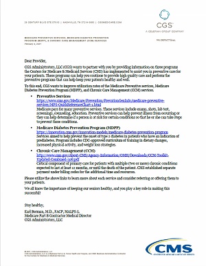CGS is dedicated to doing our part to help you deliver better healthcare for Medicare beneficiaries at reduced cost. We feel this is possible by providing more services that are preventive in nature, or that address specific conditions/illnesses before they become more costly to treat and jeopardize the quality of life for beneficiaries.