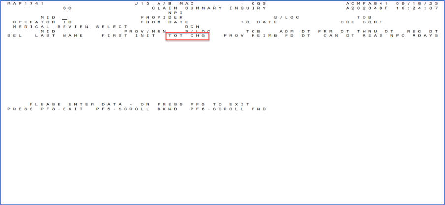 The TOT CHG (total charges) field will expand to accommodate 11 digits.