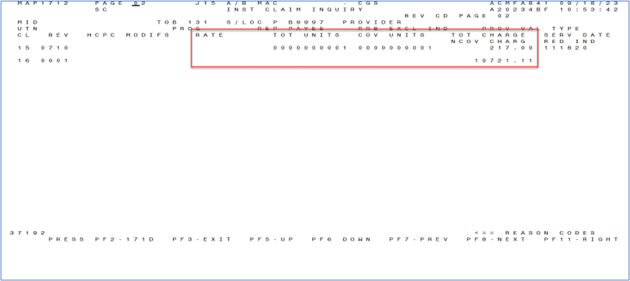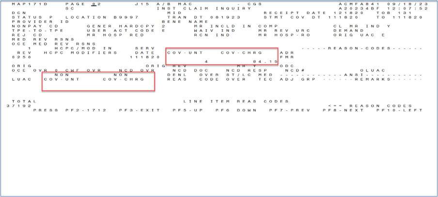 • 11 digits – COV CHRG (covered charges), NON COV CHRG (non-covered charges), and total non-covered charges (0001 Revenue Code line)
