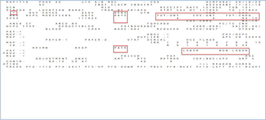 • 11 digits – TOT CHRG (total charges), PAID (patient paid), SERV RATE (service rate), LABOR (labor amount), and NON-LABOR (non-labor amount)