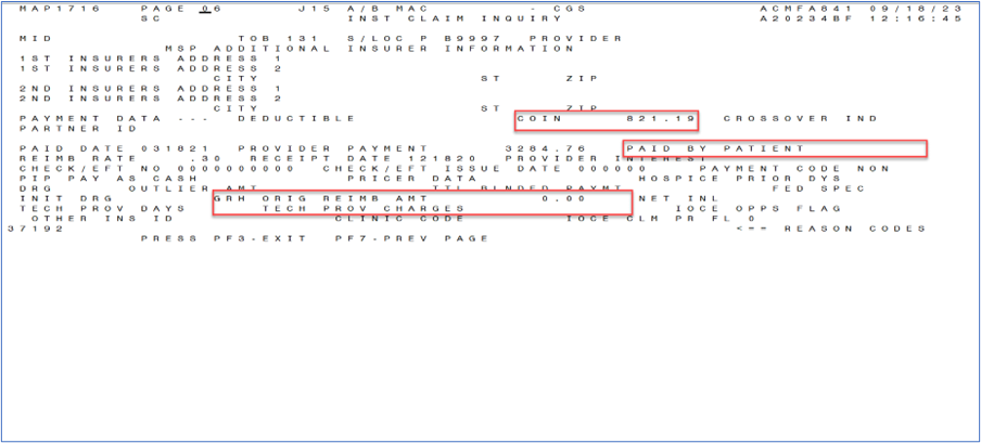 • 11 digits – PAID BY PATIENT, GRH ORIG REIMB AMT, and TECH PROV CHARGES
