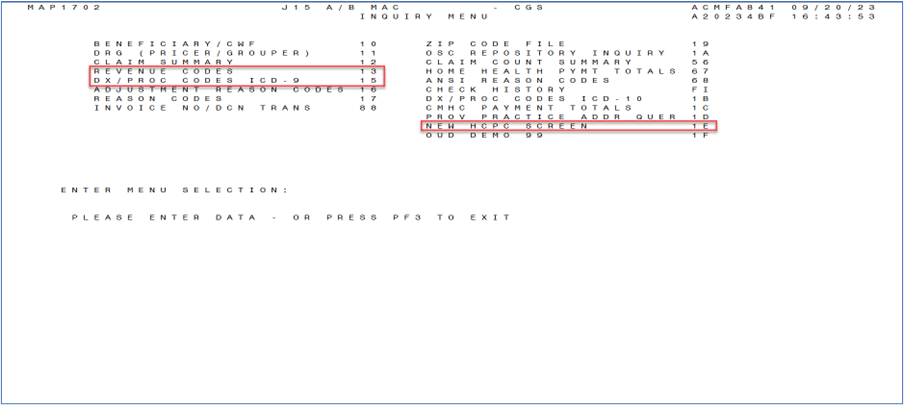 In addition, a separate CR instructed FISS to remove the HCPC Codes inquiry screens (Option 14). The New HCPC Screen inquiry (Option 1E) is still available.