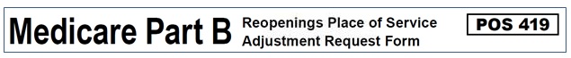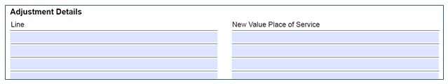 (Reopenings Place of Service Adjustment Request Form) will allow you to request simple correction to replace the place of service (POS) code on a line item of a previously processed claim.